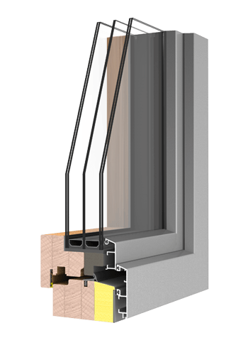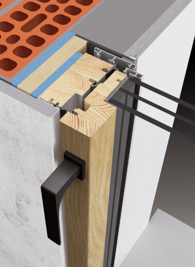 Në anën e brendshme, një pjesë unike e drurit është duke përshtatur disa variante të kornizave të jashtme të aluminit.
